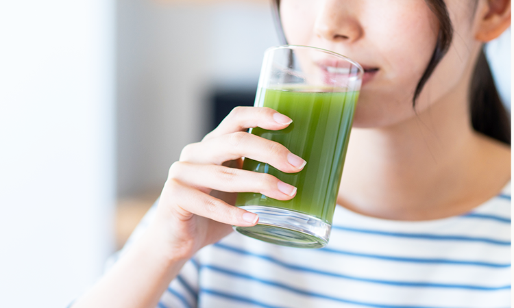 食物繊維、ビタミン、ミネラルはもちろん、緑黄色野菜に多く含まれる葉酸、抗酸化作用のあるポリフェノールなど、栄養素の豊富な青汁がおすすめです。