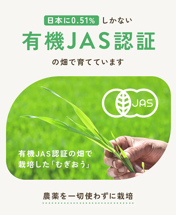 この清らかな環境で栽培されている「むぎおう®」は、有機JAS認証も取得。